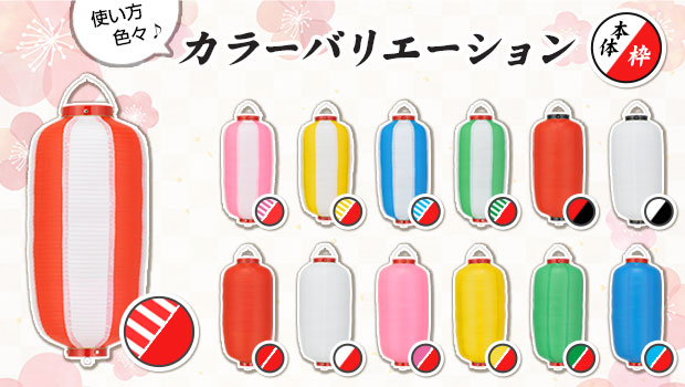 本体のカラーバリエーションが豊富に販売されている事も、9号長型ビニール提灯が店内の賑やかしからお祭りの装飾まで様々なオーダーメイドの用途に人気を博している証です。