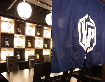 居酒屋様の店舗装飾用オリジナル間仕切りのれんを名入れ制作致しました。