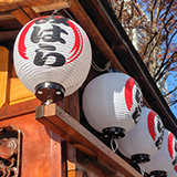 両脇を彩る白提灯が良いアクセントとなっており、より一層魅力的な店構えとなっています。